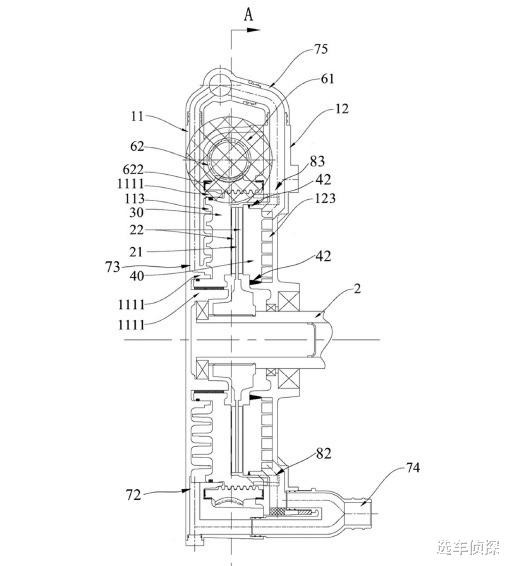 从结构上看,这套专利的刹车被完整封装在电驱壳体内,核心是一套围绕传动轴布置的三明治式摩擦结构。摩擦盘套在传动轴上,与轴同步旋转;一侧是固定在壳体内的固定盘,另一侧是可以沿轴向移动的驱动盘。正常行驶时,这几块盘片彼此分离,传动轴可以自由转动;当需要刹车时,把摩擦盘夹在两侧盘之间,通过摩擦让车停下来。
